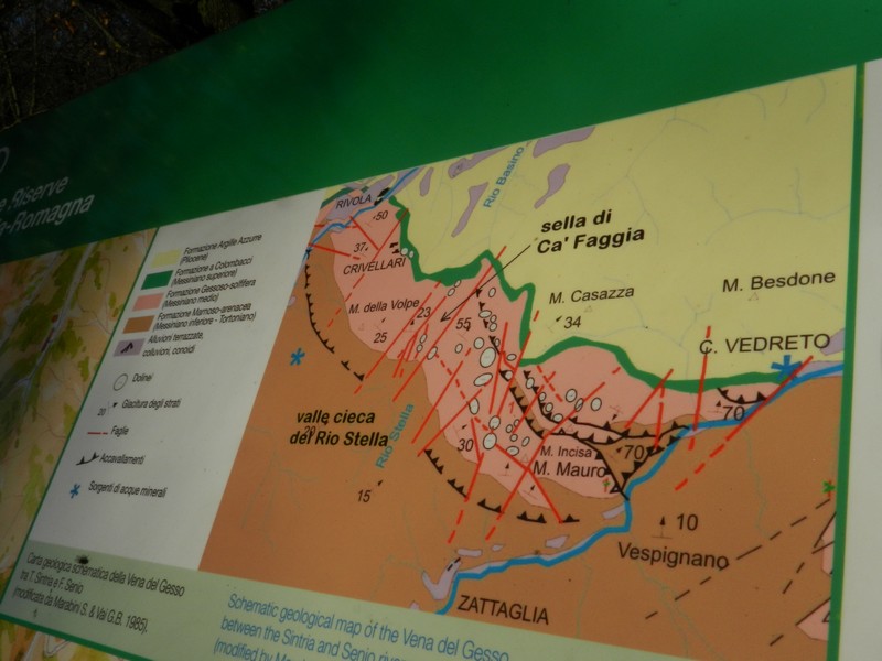 Mentre salivo riflettevo su quanto il fiume Senio sia intimamente connesso alla vena del gesso. Fra l’altro raccoglie le cristalline acque dei suoi torrentelli carsici. Ho letto che si vorrebbero promuovere gli amici del Parco della Vena del Gesso. Mi pare una buona idea. Amici della Vena del Gesso e Amici del Senio potrebbero essere buoni fratelli e, assieme, legare collina e Vena alla magnifica pianura della Bassa Romagna, uniti dal babbo Senio, a volte brontolone e minaccioso, ma solo perchè chiede quella cura e quel rispetto che da decenni gli vengono negati.